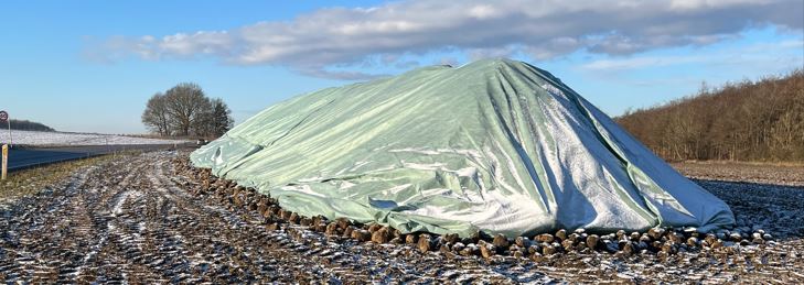 Roer, der er lagt i kule, og skal leveres efter 10. december, dækkes af Nordic Sugar med fiberdug (Toptex) for at holde roerne tørre og give frostbeskyttelse.
