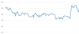 Udviklingen i prisen på futures vises som en graf som viser data fra op til 2 år tilbage i tiden.