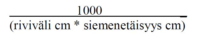 Alla laskukaava. Esim. 1000 / (47,5 cm * 18 cm) = 1000 / 855 = 1,17 yks./ha.